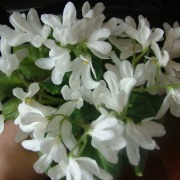 (Dates). Простые белые ассиметричные цветы. Обильное цветение. Светло-зелёные зубчатые листья. Полумини.